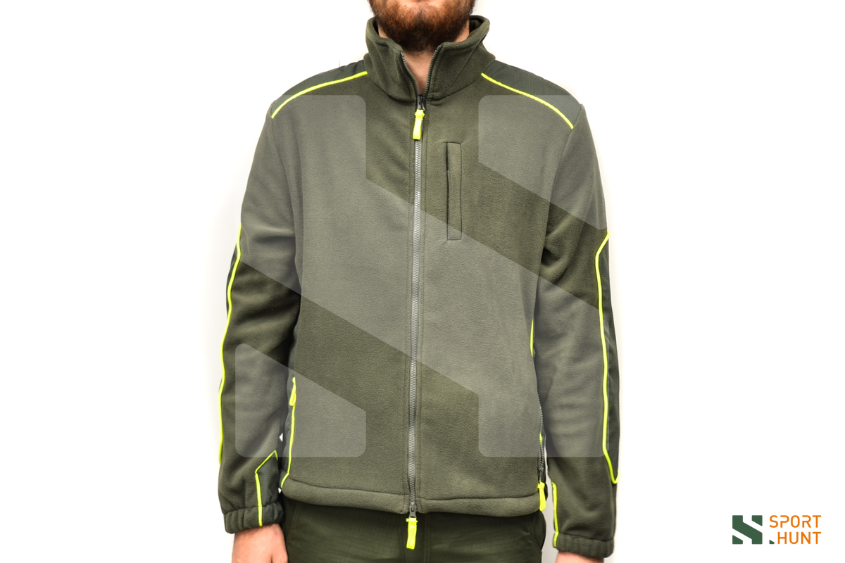 Pile RS Hunting in colore verde militare e giallo fluo, adatto per caccia ed outdoor.