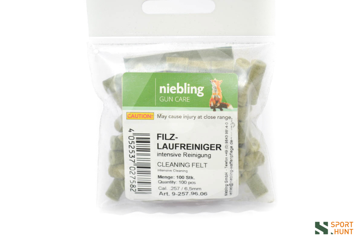 Busta feltrini Niebling Gun Care per pulizia intensiva pistola – calibro 6,5 mm .257 100 pezzi